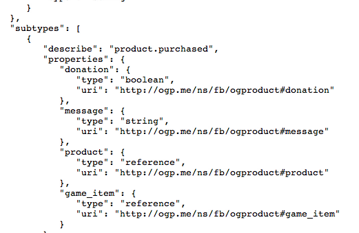 While looking around in the ogproduct code, Waddington found code for a “product.purchased” action, with options underneath for a donation, message, product, and game_item.