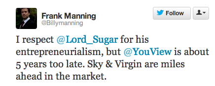 Fast forwarding to 2012 and the final launch of the product, the whole industry has moved on: not only are there more pay-TV providers out there (including BT itself with its Vision service) but the existing services have become a lot more encompassing — for example BBC’s catch-up service iPlayer can be accessed via Virgin and BT’s services. On top of that, there are a host of other ways to get your TV fix now via OTT plays from Netflix, Amazon/LoveFilm, Google and more.