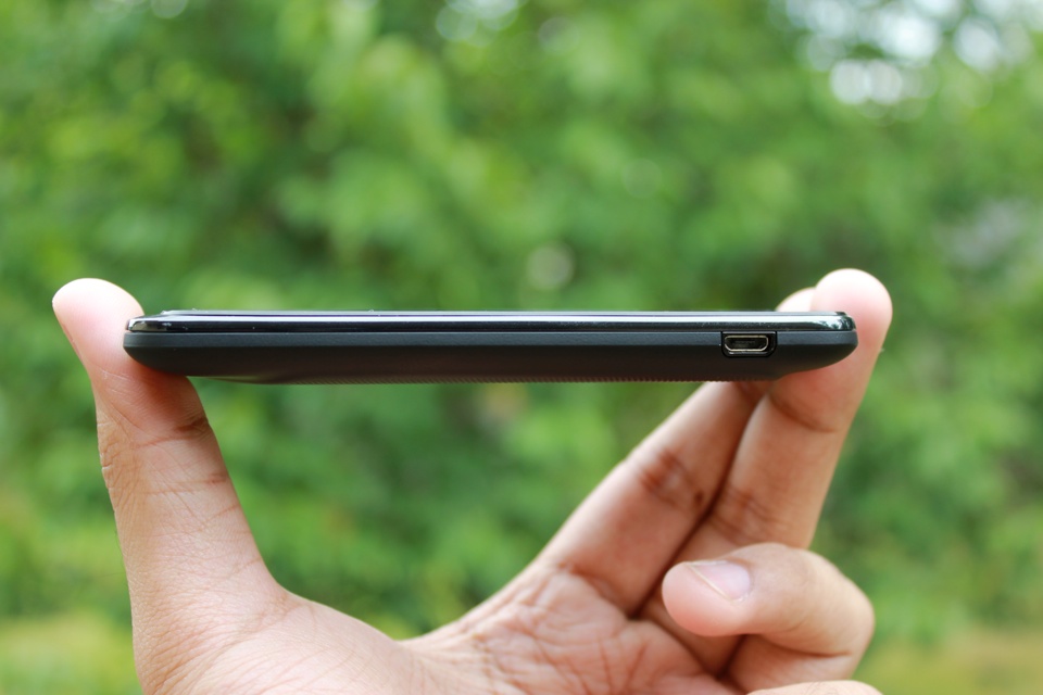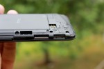 Aesthetically speaking, it’s not all old news — while the back has a matte finish, the device’s face is lined with a glossy gray plastic that helps break up the monotony. Most of the real estate is taken up by the device’s 4-inch Super LCD display (more on that later, naturally), and sitting below that is HTC’s now-standard row of three Android navigation keys — back, home, and recent apps. The front-facing VGA camera sits just above the screen, and north of those are a handsome red speaker grill, sleep/wake button, and headphone jack. The microUSB port is located on the Incredible 4G’s bottom left side, just opposite microSIM and microSD slots (though you’ll have to pop off that back plate to get to them).