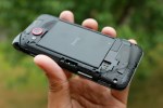 The name of the design game here is nearly the same as it has been for nearly every other HTC/Verizon device in recent memory — the Incredible 4G’s rear is swathed in a matte black soft-touch plastic (warning: it picks up smudges easily), and the signature red trim around the camera lens makes a return after being left out of the Droid Incredible 2. Probably the most notable aspect of the Incredible 4G’s back plate though is the grippy, ridged finish that covers most of it — yet another design cue from the Rezound.