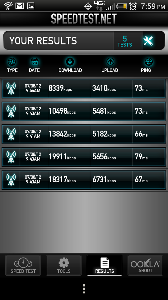 The Incredible 4G’s average Quadrant score was 4098 — understandably not quite as high as the HTC One S (4371) since it sports a more robust spec sheet, but it’s awfully close. Meanwhile, it put the Galaxy Nexus (2730) to shame, though that seems to be a recurring trend with the devices I’ve played with recently. In short, the new Incredible should have no trouble keeping up with your daily grind.