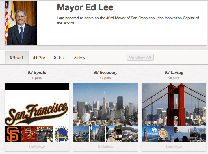 The news was delivered today by San Francisco’s Mayor Ed Lee, who has rung in the news by launching his own Pinterest account.