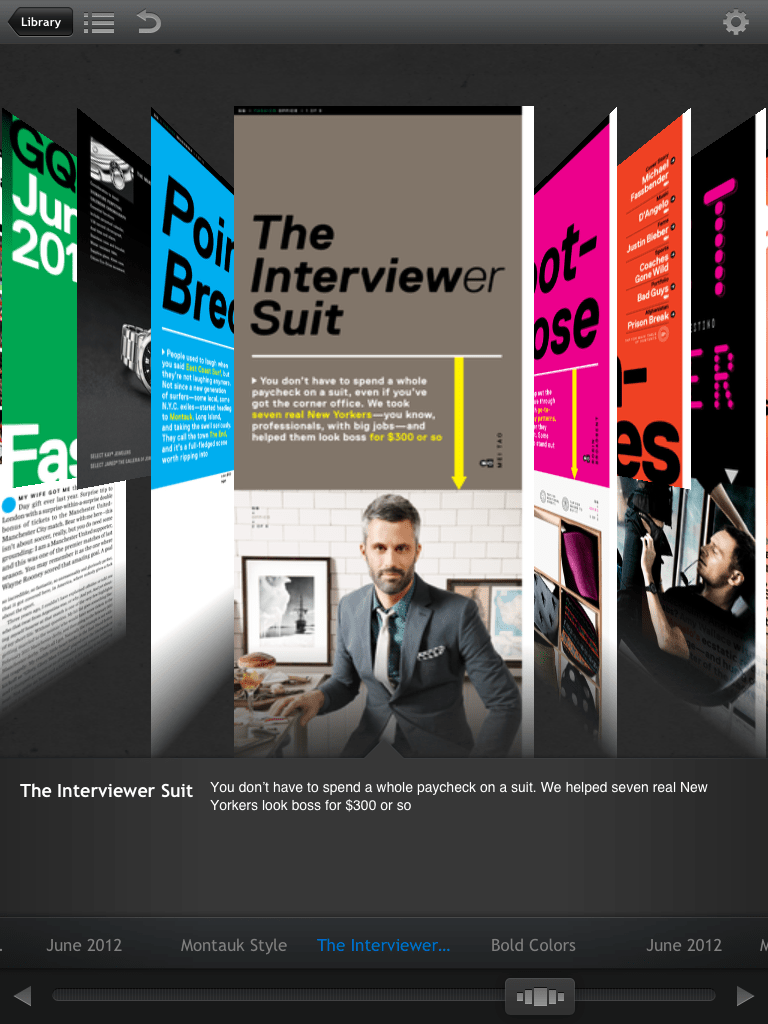 The app now includes 39 titles — the new ones are Bon Appétit, Brides, Golf Digest, GQ, Self, Vogue and Wired. The catalogue will continue to expand, Guenther says, with the goal of doubling before the end of the year, but he wants to focus on “premium, high readership titles,” so don’t expect your favorite obscurity to appear in the app anytime soon. Guenther’s other plans include adding search, personalization, and social features, as well as expanding to other platforms.