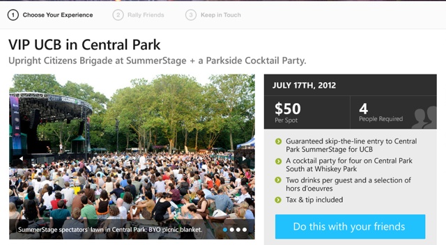 Perhaps the best part? Each participant in an experience has to use a credit card to fork over their share of the cost, but only has to pay when all of an event’s slots are filled. Thankfully, this means the process of wrangling payments is much neater (not to mention less contentious) here than it is in meatspace. Like most other group-buying services out there, GroupMe will take a percentage of the sales from each transaction, though the team has other (secret) monetization ideas in the works too.