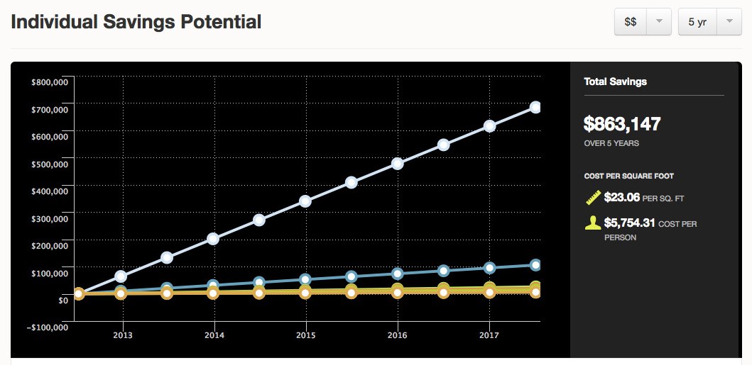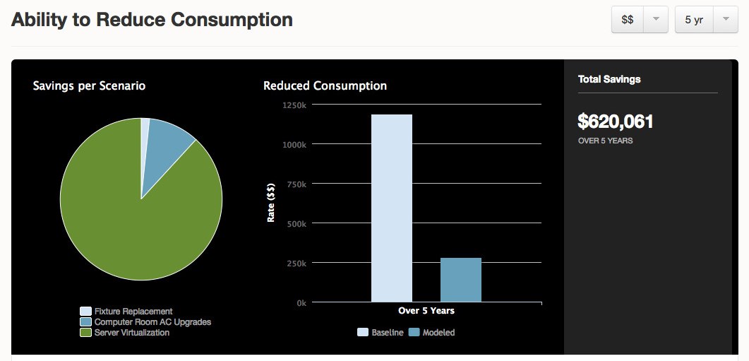 At the VA’s 11-floor headquarters, SPARC520 installed 107 clamp devices that monitor the building’s electricity, water and natural gas usage. Each clamp goes over the top of a wire to measure flow-through and has 27 data collection points, providing a total of 2,889 data collection points throughout the building. This data is fed to SPARC520’s analytics platform, where real-time energy usage can be viewed on the web or on an iOS device.