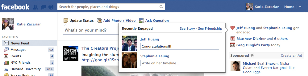 However, the increased awareness of friends’ special occasions may not be good for all users. Perpetually reminding singles of their friends’ engagements and wedding could lead to sad or jealous users. Seeing a friend’s wedding that you aren’t invited to could even lead to falling-outs. Of course, this would happen with check-ins and photos anyway. This is just an added reminder that is sticky on the homepage.