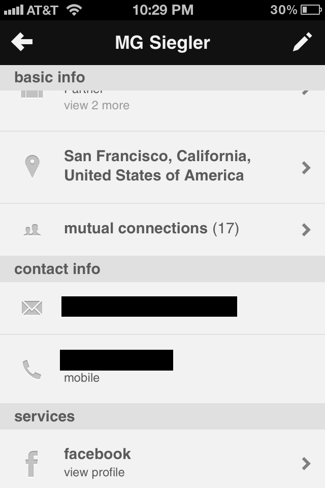 His wasn’t the only private contact information exposed, from what we’ve seen. Other high-profile people whose personal information was available included TechCrunch contributor MG Siegler, Path co-founder Dave Morin, Foursquare’s former Director of Business Development Tristan Walker, Foursquare co-founder Naveen Selvadurai, and more.