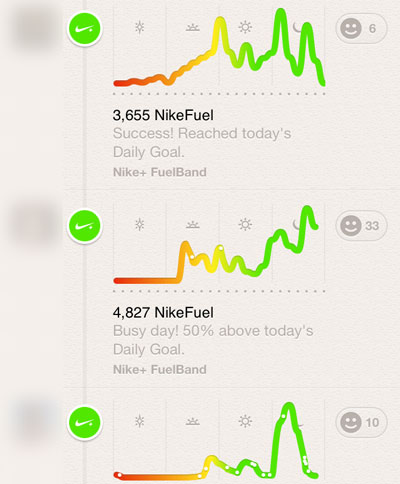 This is a new one, and caught me a bit off guard the first time I saw it. Recently, Path added Nike FuelBand integration, where at the end of each day, a user’s Fuel graph is posted to Path. This immediately struck me as out of place. While the graph certainly represents the result of many experiences, something about it doesn’t fit the tone of the rest of the updates. And since these are posted at the same time each day, it feels spammy when suddenly 5 friends have graphs posted automatically when they didn’t trigger the action.