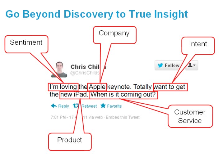 The new capability comes through the partnerships with eight companies. Klout, OpenAmplify and OpenCalais are now joined in the ecosystem by Clarabridge for text sentiment analysis, Lymbix for emotion and tone classification, PeekAnalytics for social audience measurement, Solariat for social intention analysis, and new capabilities from OpenAmplify for customer service insights.