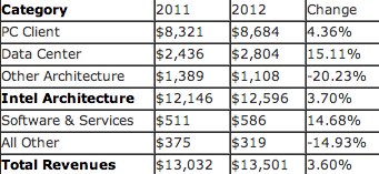 Intel gets better margins for its data center technology than it does for its PC client platforms such as its notebook and desktop computers.