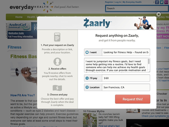 But how does it work? While on partner sites, users create Zaarly requests by clicking a button that will be integrated into content, like articles, social media buttons, and photos. The Zaarly API then populates the request with the title, description and location details from the partner’s site, enabling people to receive offers from users in their own community, who can choose the best response and pay through Zaarly’s platform.