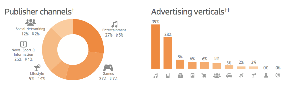 Adfonic’s extensive report (which you can read in full here) also covers a lot of detail on successful verticals, the difference in ad performance by gender and other metrics. One notable graphic that caught my eye was this one on impressions based on different verticals, which shows that music is currently having the biggest pull for advertisers, taking 39 percent of all ad spend on its network; technology ads were the second-highest at 28 percent. In terms of publisher channels, sites and apps in the entertainment and lifestyle categories are seeing increases in their ad requests, while games, social networking, and news/sport/information all saw declines.