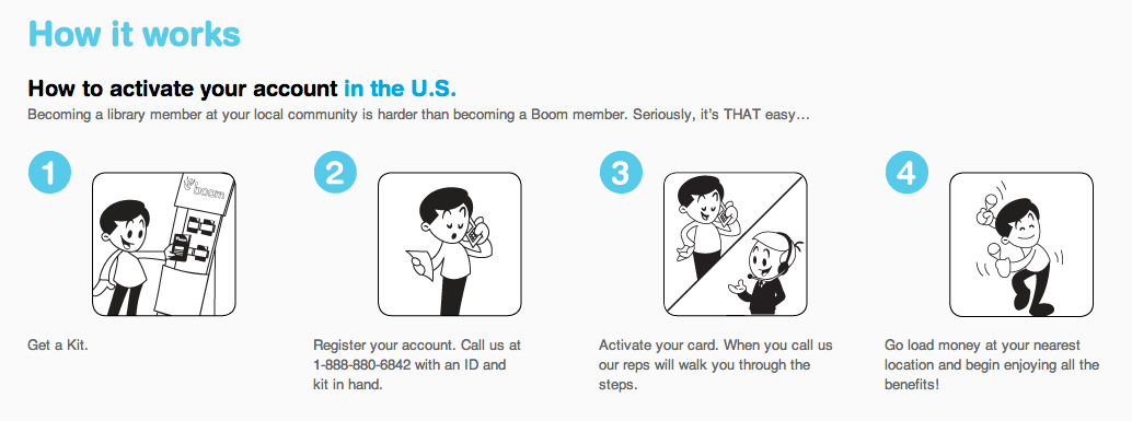 Currently, U.S. customers can pick up a Boom kit at a local store (some 7-Elevens in California have them, according to the company’s website, but the company reports there are 15,000 locations available), register their account by calling a number, and can then load their provided prepaid card with money at participating retailers or via an ATM. The card is used for withdrawals, too. Boom says it now has over 100,000 supported ATMs in over 150 countries. Once their account has been funded, they can send the money elsewhere, including domestically, by texting SEND <amount> <mobile number or nickname>.