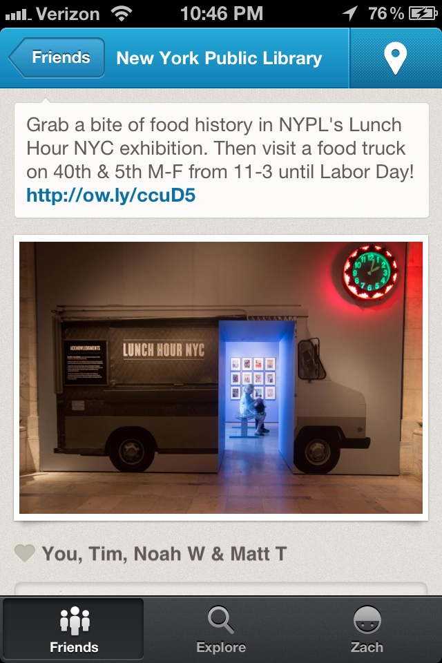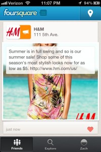 So, I could “like” my favorite cafe in Seattle on Foursquare and receive updates on its daily specials while I’m in town. But when I’m back home in San Francisco, its updates won’t fill up my Foursquare feed.
