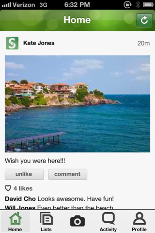 Sidebark’s user interface is pretty much par for the course, in terms of how media-sharing apps go – there’s a camera button, the ability to import from your camera roll, a profile page, an activity feed, and even photos filters.