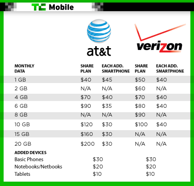 It’s nearly identical to how Verizon’s Share Everything plans work, but that’s not exactly new for the two carriers — they’ve been jumping on and implementing each other’s ideas for years now. That said, there are still some notable differences between how AT&T and Verizon have approached the shared data situation.