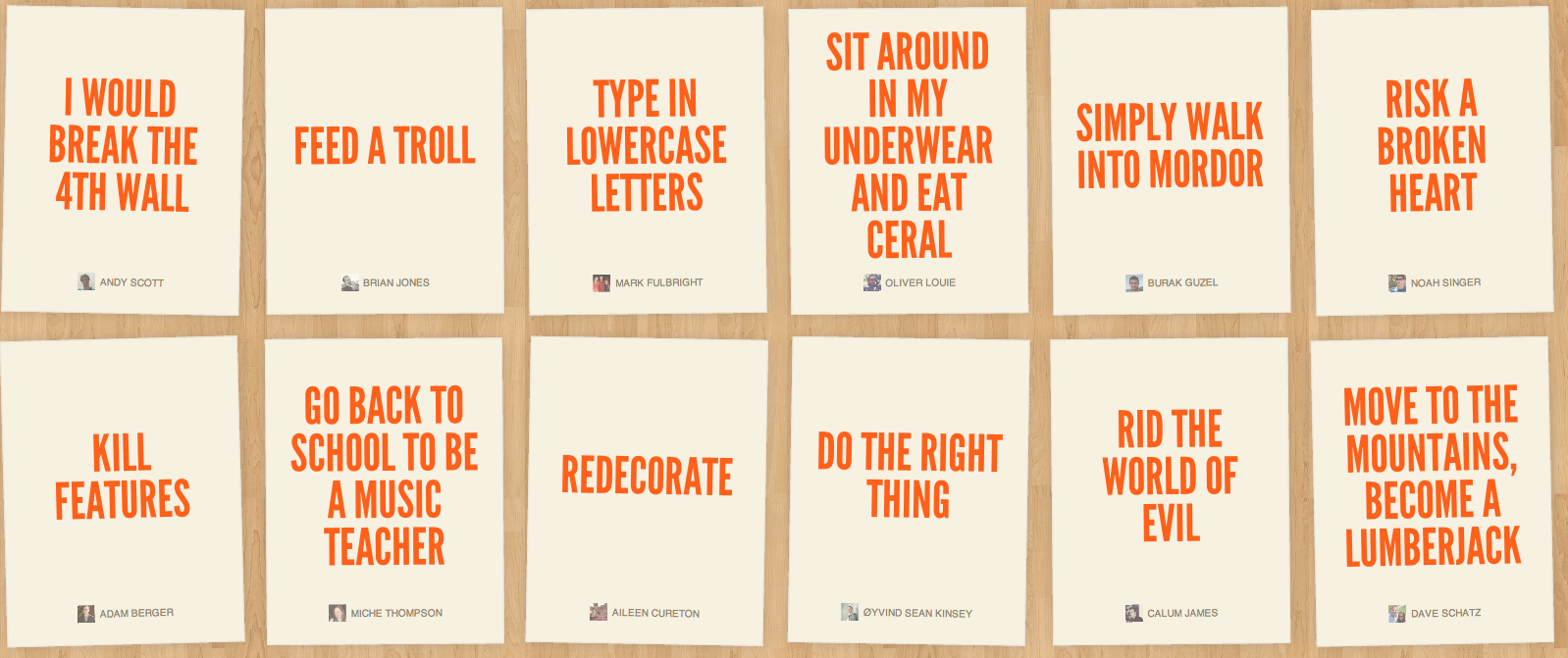 Barry comes from Facebook’s Analog Research Laboratory, where he and Everett Katigbak design and print inspirational signs and posters for Facebook’s offices worldwide. Some of their more famous posters include “Likers Gonna Like” and “Stay Focused And Keep Shipping.” Now, he’s working to share posters outside Facebook’s offices.