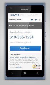 Payvia will be made available to app developers, web app developers and online merchants who are selling digital goods, he says, and he teased that it already has two major brands signed up at launch. Unfortunately, payvia hasn’t been given the go-ahead to announce those companies’ names at this time, but Wedd says they are well-known brands that will be immediately recognizable to anyone. He couldn’t even give a hint as to what sort of company one brand was, saying doing so would be too obvious, but said the other brand is communications company with a platform for making phone calls. (He did mention “streaming music” several times during the call as an example, and the screenshot shows a generic music service as well. That’s not a confirmation of anything, just a guess.)