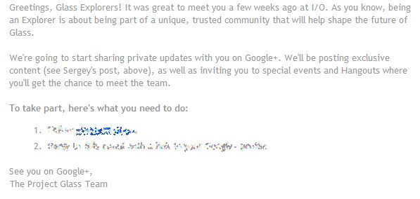 Google’s Project Glass made quite a splash at I/O last month. Besides stunning the audience with a skydiving demo of Glass, Google also allowed those developers who attended the company’s annual developer conference to exclusively pre-order the $1,500 Google Glass Explorer Edition. These first alpha versions of Glass are only scheduled to ship early next year, but according to an email the Project Glass team just sent to everybody who pre-ordered the devices, the company plans to involve this early tester community before the devices ship as well. Google, the email says, will post exclusive content for those with pre-orders on Google+ and also invite them to special events and Google+ Hangouts with the Glass Team.