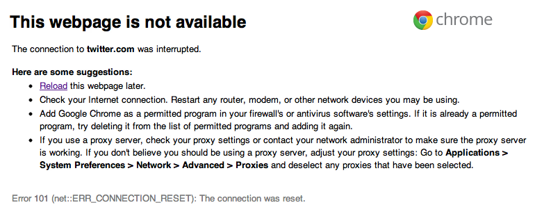 At 12:58 p.m. Twitter started delivering server-side error codes – or a “Twitter is currently down” message to some users. But Twitter doesn’t appear to be completely out of the woods just yet. Users along both coasts continue to experience problems connecting.