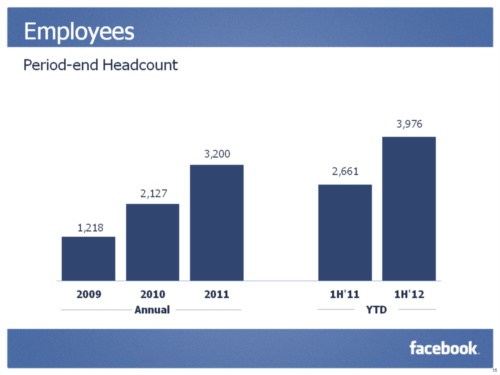 Company Headcount – Regarding Facebook’s thoughts on the its small headcount, Zuck said Facebook has always been smaller than other companies, and that is a reason people like working there, and that it’s helpful in strategy. He noted that Facebook wants to make every app social, but can’t build them all in house. Zuckerberg said “Over time it might make sense to build more of these things ourselves.”