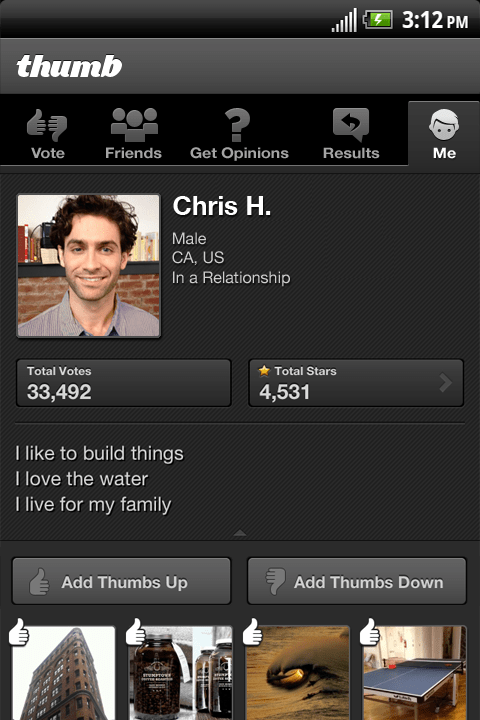 The version 3.0 improvements that previously launched on iOS include a revamped interface that’s supposed to simplify friend discovery, a chat feature, and a leaderboard. Kurani says the app also highlights the company’s new branding and message, which is all about “getting and giving opinions.” (Thumb’s branding has been evolving for a while now, most notably when it changed its name from Opinionaided last year.)