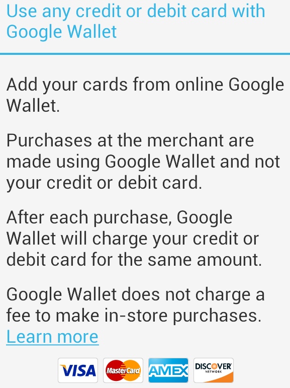 According a post on Google’s Commerce blog, the service now plays well with all major credit card types, but a representative from American Express pointed out that the statement wasn’t entirely accurate. Users are free to load American Express cards into the Google Wallet app and use them for in-store purchases, but American Express never officially signed off on that deal.