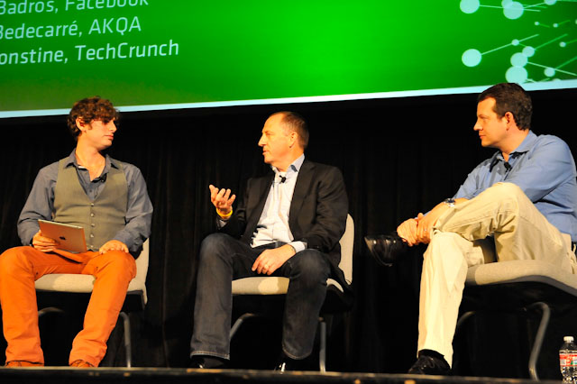For his part, Badros (who’s on the right side of the photo) wasn’t asked to address most of those criticism and suggestions directly, but he did offer some of the Facebook perspective on advertising, including the Sponsored Stories that users see in the newsfeed. TechCrunch’s Josh Constine asked if there’s a specific ratio of sponsored to unsponsored stories that Facebook has in mind, but Badros said it changes from user to user. He also repeated a common talking point about ads on both Facebook and Twitter — that one of the best things about the sponsored content those sites is the fact it originates as “organic content”.