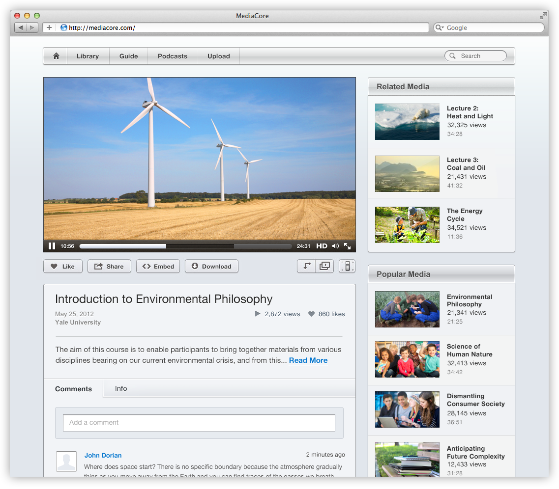Bowness notes that one of the issues with video in education is that many schools block YouTube, which is where a lot of today’s educational content is found. “YouTube is blocked in about 80% of U.S. K-12 institutions, and it’s blocked in a lot of corporations too…it isn’t perceived as a safe place to send kids to learn,” he says. “or employees as they can get distracted.” So on MediaCore, teachers can privately share video with students, other teachers, or parents, as need be. In addition to commenting, they also have access to view real-time analytics around those videos.