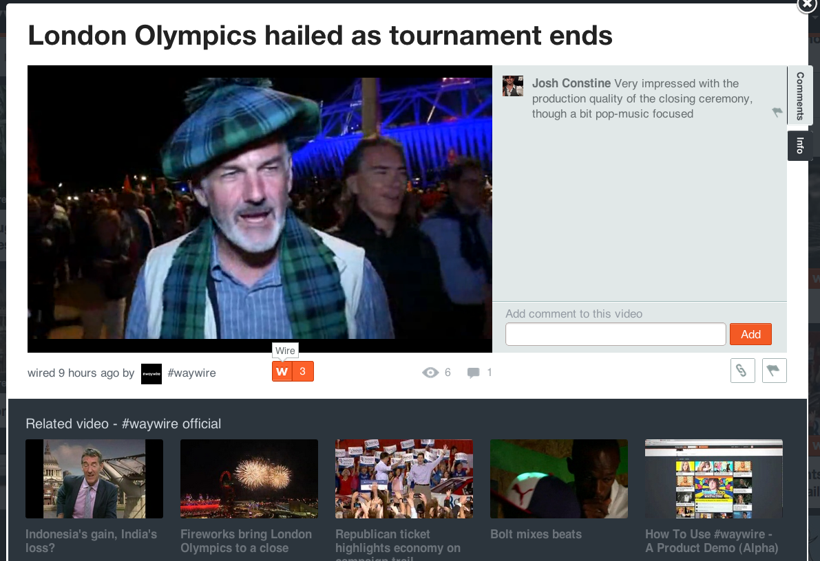 Don’t let big media decide what’s important. #waywire enters private alpha today to let you collect, curate, and share video news from across the Internet. Clips from top-tier broadcasters, citizen journalists, and original web content creators can be cobbled together to let you share your perspective on what’s happening in the world.