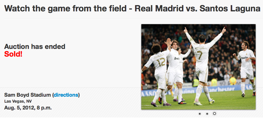 Fandeavor is partnering with colleges and sports teams to package and sell exclusive experiences, like stadium tours and sideline passes, to rabid sports fans. Users can peruse the site for opportunities, and a la eBay, bid auction-style on particular events or “buy them now” at pre-set prices. For example, one recent package included tickets to a Real Madrid match at Sam Boyd Stadium in Las Vegas, on-the-field seats, “VIP Field Level Tent access,” a VIP Parking Pass, a free UEFA Euro 2012 soccer ball and free hospitality food and beverages.