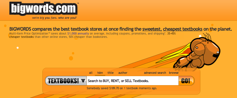 Last week, Amazon launched its own textbook rental service to compete with the likes of Chegg and Barnes and Noble, and Sherwood says that the first company Amazon called to partner with was BIGWORDS. Why? Because today BIGWORDS is a price comparison tool, designed to bring price transparency to the space and give students advice on where to find the best prices on textbooks, no matter where they live — Amazon’s new service or otherwise.