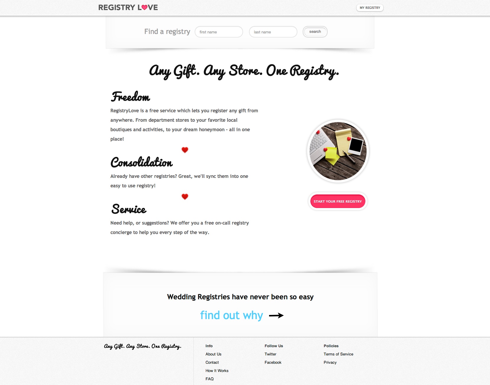 With RegistryLove, the idea is simple: any store, one registry. No single store has everything a couple wants to register for, and many couples would like to include unique items they adore from smaller merchants, or even local shops without an online presence, on their registries.