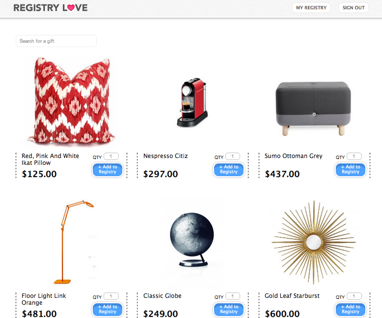 The service generates revenue through affiliate income and sources items from either the merchants (now over 100) or the wholesalers the company is working with – a group which even includes some national retailers. For local merchants without a website, RegistryLove will also go to the store and snap a photo (currently Bay area only).
