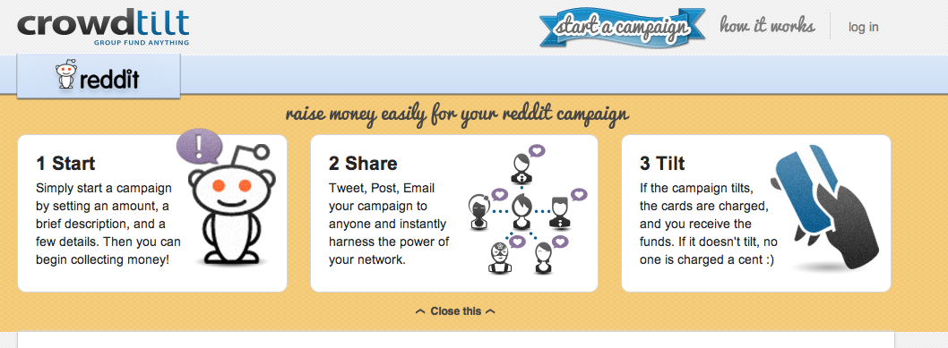 We’re also hearing that the dual announcement caught the folks at Crowdtilt a little off guard – they didn’t know that reddit was working with both them and Dwolla simultaneously. No one’s mad, but it was a little surprising to find out after the fact that the launch was not exclusive. (Dwolla claims they were aware, however. Hmm.) We’re also hearing that reddit is now on the lookout for more partners going foward.