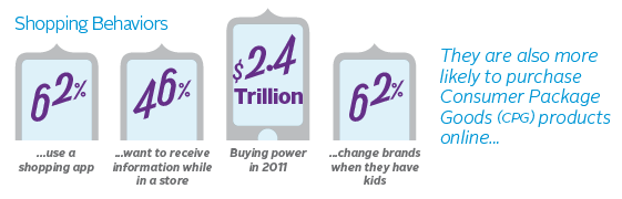 Plus, 62% of connected moms report using a shopping app, and 46% say they want to receive info on their mobile device while in a store.