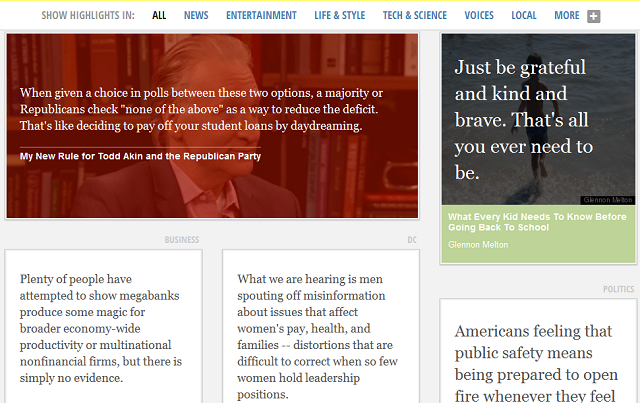 Labs co-founder Conor White Sullivan explains that there are two ways a reader can “vote” for a sentence: either by selecting the text and clicking the new “Highlight” button that will start appearing on Huffing Post today, or by simply copying the selection. The sentences are also judged by the ratio of highlights to page views, since articles and blog posts that are featured on the front page of Huffington Post or AOL.com get more traffic than posts that are deeper in the site’s navigation. So a sentence that received lots of highlights even though it got a relatively small number of page views will be treated as very interesting on the Highlights page. This should help surface interesting stories that might otherwise be overlooked.
