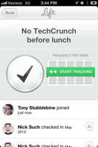 Lift has been in development for almost a year, and though it initially went big and tested out gamification options, in the end, Stubblebine tells us, people were interested in simplicity. The app today is pared down almost to an extreme, no gloss, and no elaborate design getting in the way. “Real life progress is more motivating than a game,” the company said in its blog post today.