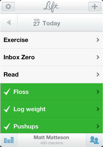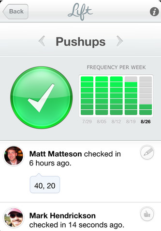 And because people need extra motivation or boosts of encouragement, Lift connects users with friends and with people trying to build the same habits, the goal being to create a portable, mobile support community.