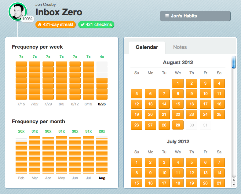 The co-founders said that, so far, this simplicity has led to encouragingly high retention rates, with more than 50 percent of its beta users checking in multiple times over the course of a month. The team has been using the app itself, and as you’ll see below, co-founder Jon Crosby has already racked up 400 days of “inbox zero,” which is enough to make anyone jealous and reason enough to give the app a try.