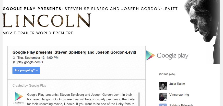 This piece of news comes wrapped up with quite a few bows-of-interest. If you’re familiar with how Google+ Hangouts work, then you’ll be interested to know that Steven Spielberg and Joseph Gordon-Levitt will be participating in one on September 13th at 4 PM PT.