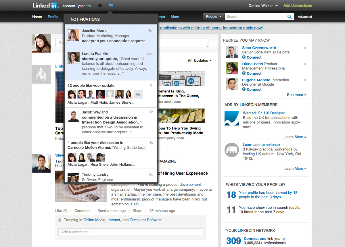 This new feature is just starting to roll out today, so it may take a few weeks for all members to see the flag appear at the top of your LinkedIn homepage. In the meantime, start sharing a professional update, like a relevant news article, or comment on what your connections are discussing. We’ll take care of the rest and make sure you’re notified when people take actions on your updates.