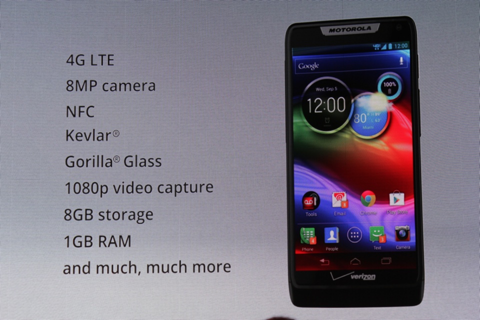 As such, most of the details are already common knowledge, like the inclusion of a 4.3-inch qHD Super AMOLED display, a dual-core 1.5GHz Snapdragon MSM8960 chipset, 1GB of RAM, 8GB of internal storage, and an eight megapixel situated on the phone’s (Kevlar-clad) back. Despite its tiny frame, the RAZR M also sports a 2,000 mAh battery keeping in line with the power management philosophy that Motorola’s Dennis Woodside talked up earlier in the event. Of course, that’s not to say that Motorola has given up on its “durable” angle too — the now-standard Kevlar is a testament to that, as is the fact that the device’s display is coated with a layer of Corning Gorilla Glass.
