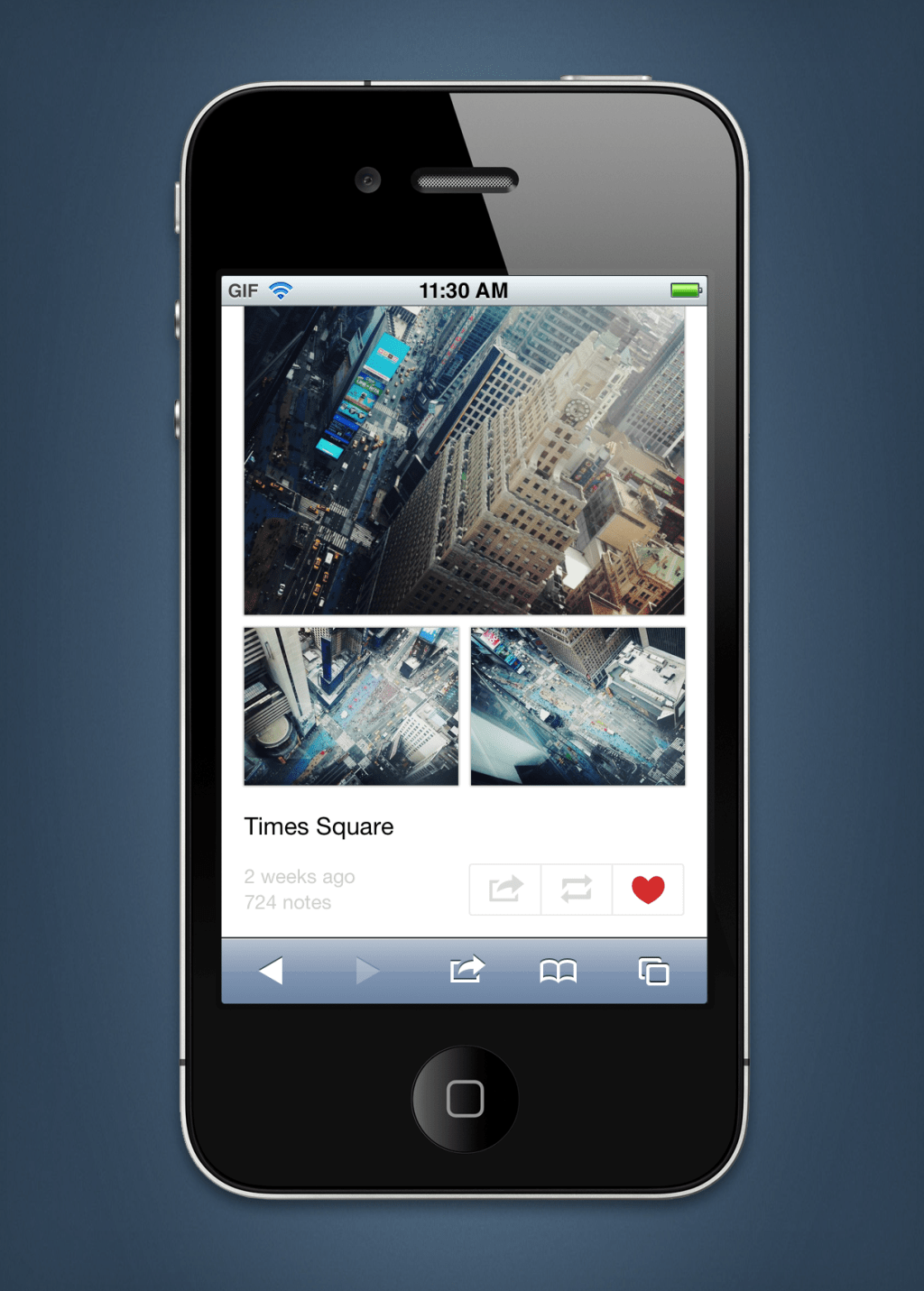 Tumblr today revealed a new and hopefully improved design for its default handling of mobile device blog rendering. It’s a clean layout that brings liking and re-blogging to the main page, as well as sharing via Facebook, Twitter and email. Mobile sites also now support Pages, Tumblr’s more permanent locations for stuff like “About Me” sections that live outside of the main feed, and two darlings of the blogging world and mobile web in general, infinite scrolling and full-width images.