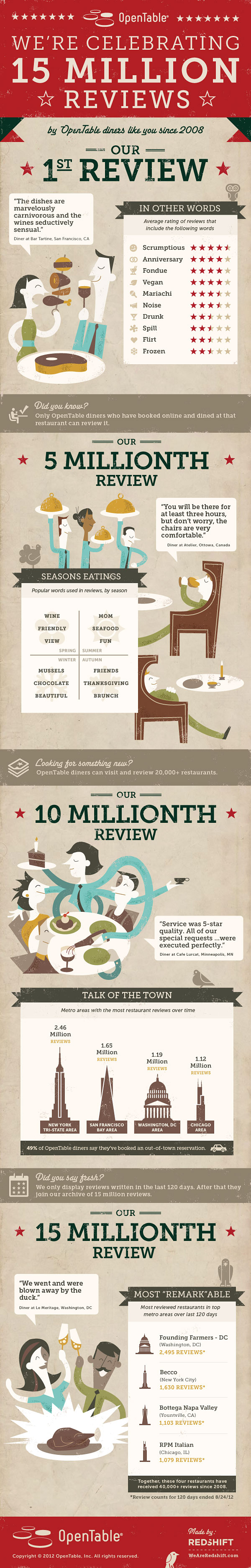Since we launched our reviews program in 2008, restaurant reviews have become an integral part of the dining experience. For a growing number of people, the experience of dining out now starts with consulting our trusted online consumer reviews to find the perfect spot and culminates with writing a review that will benefit others. The beauty of this virtuous cycle is that it benefits both our diner community and restaurant customers.