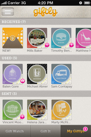 The trick underlying the app is that Giftly has a web of relationships with banks and credit card processors. When the recipient goes to redeem their gift, they pay themselves, but Giftly will reimburse them that amount through their credit card. In a sense, the more gifts you receive and send to friends, the more Giftly can serve as a mobile wallet or a record of what you’ve consumed or where you’ve gone.