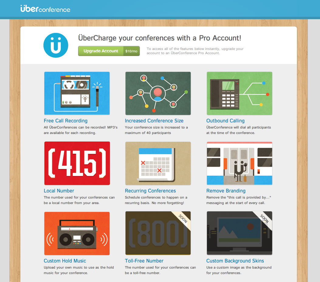 The Pro version month-to-month is $10/month for unlimited conferencing, and includes 500 minutes of dial out conference time (for the new automatic dialing feature). After that, it’s 2 cents per minute. Sign up for either the Pro or free plans is available now on the UberConference homepage here.