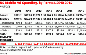 The story less monopolized in display ads: here revenues have grown by 102%, helped by the rise of big-screened smartphones, to $1.1 billion in 2012. Rich media ads will be the highest-grossing format within the display category.