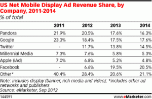 Indeed, eMarketer notes that part of the reason that Google, and others like Pandora (at 8.7% of all U.S. mobile ad revenues, 20.5% in display alone), are doing better is simply because they’ve been chipping away at that business for longer.