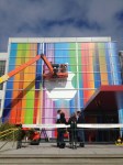The event is to be held at the Yerba Buena Center for the Arts, which just so happens to be located right next to the hotel we’re staying at for Disrupt (Hackathon begins today, by the way). In proper Apple fashion, the company has already begun preparation for the announcement event, hanging a massive Apple banner outside of the huge event center.